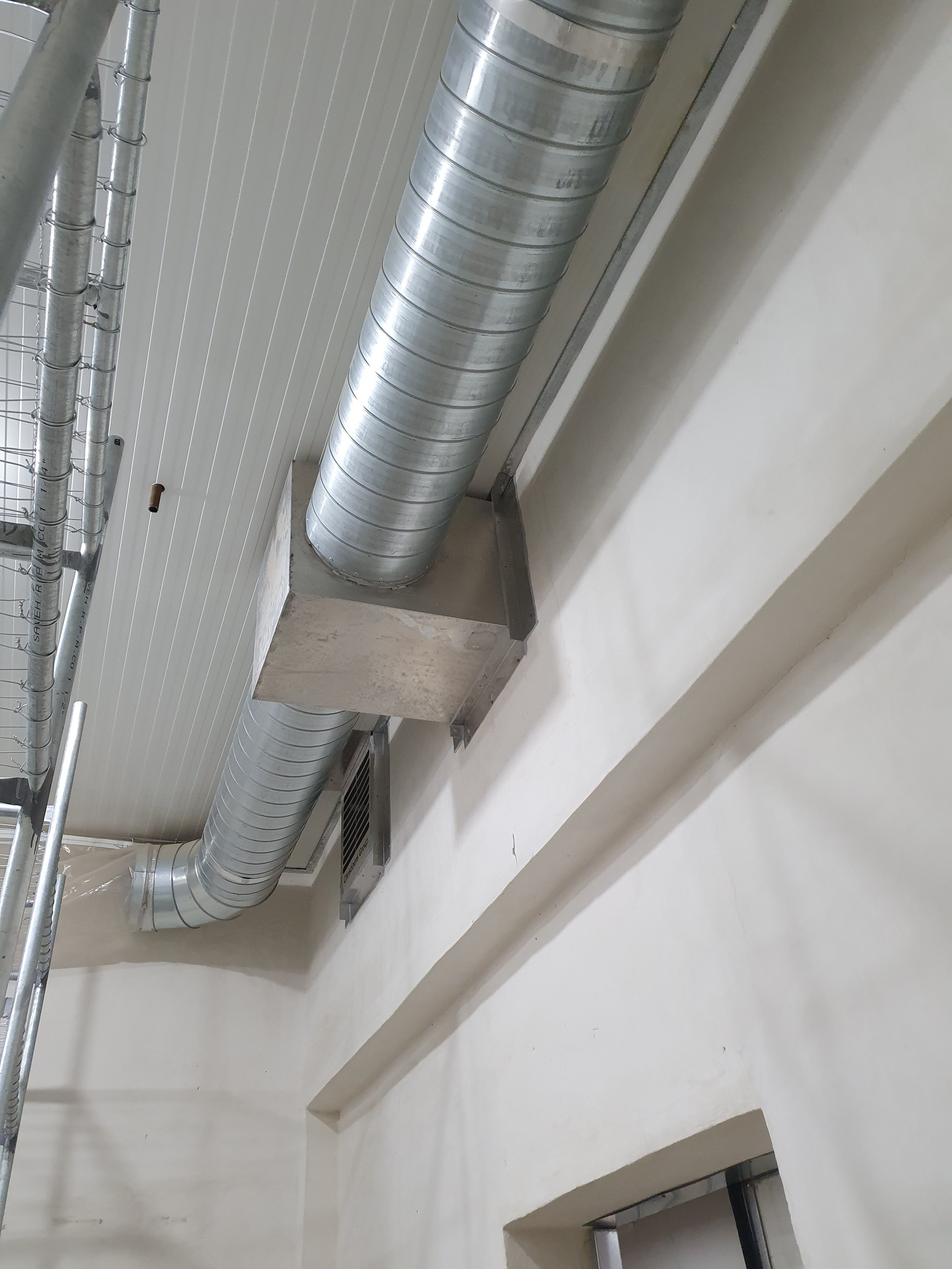Ceiling exhaust ducts equipped with exhaust fans (alternative option to overpressure louvers)